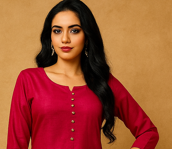 Designed for all-day comfort and timeless style, this kurti blends breathable cotton fabric with a flattering A-line silhouette. Perfect for work, casual outings, or festive gatherings, it offers a graceful flow and airy ease you’ll love. Stay cool, confident, and effortlessly stylish — wherever your day takes you.